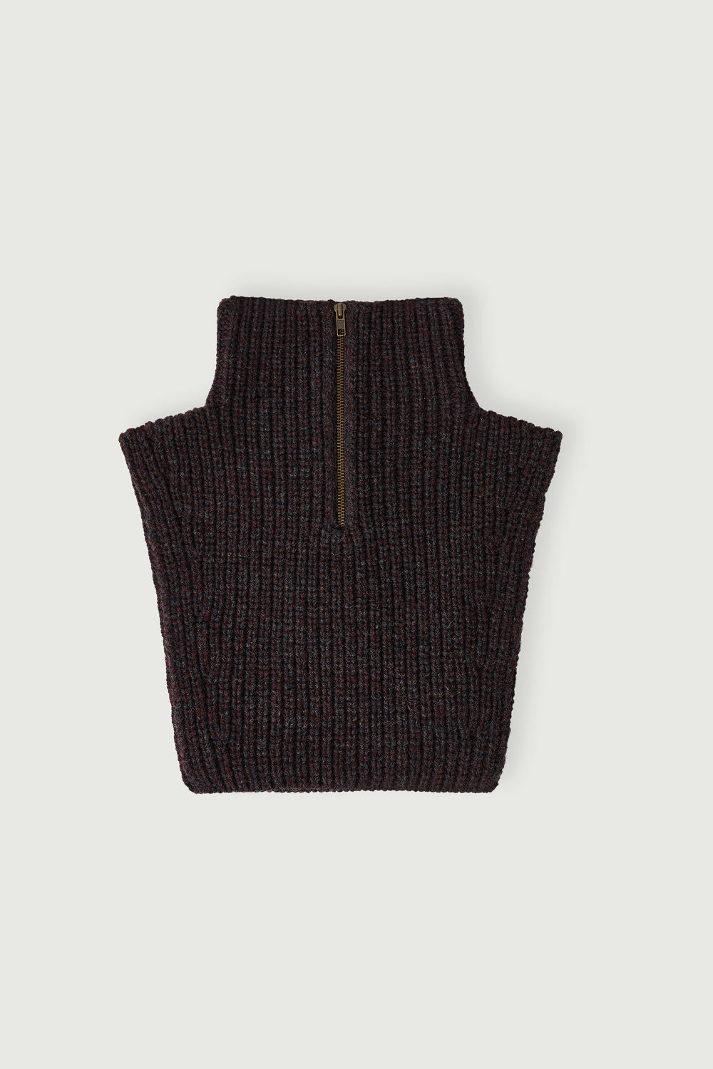 wool scarf High zip collar in grey/bordeaux wool